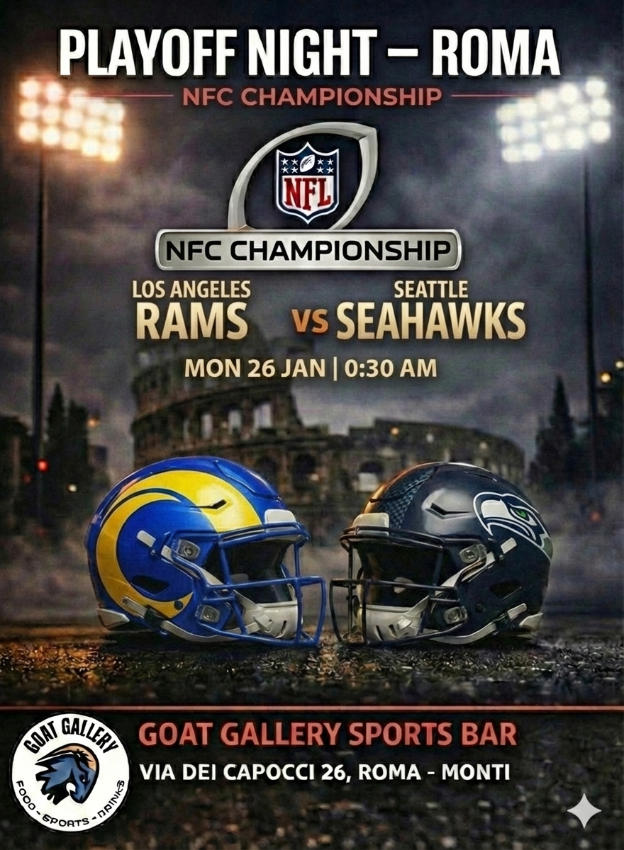 Watch the action live at Goat Gallery Sports Bar in central Rome, featuring multiple large TVs, American-inspired food, cold beer, great drinks and a comfortable setting designed for an immersive game-night experience.